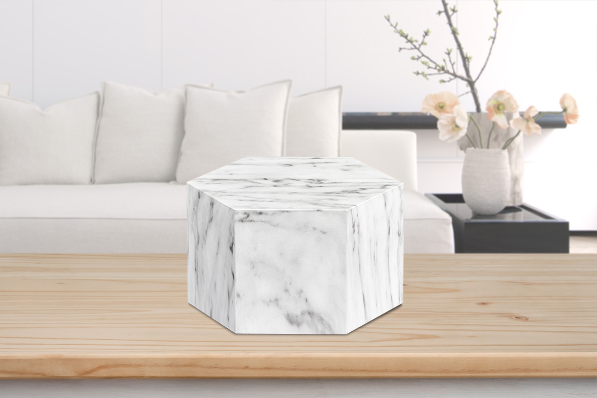 La forma classica del poliedro a sei facce rivestita da superfici dal gusto contemporaneo.